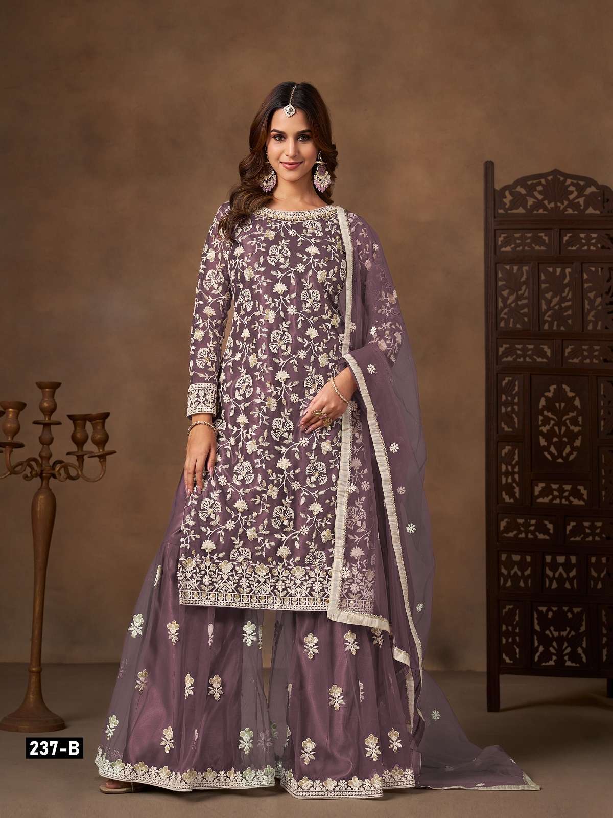 | Short Description | : | DESIGNER FANCY PARTY WEAR NET SHARARA SALWAR SUIT PALAZZO ANY 237 COLOR |
