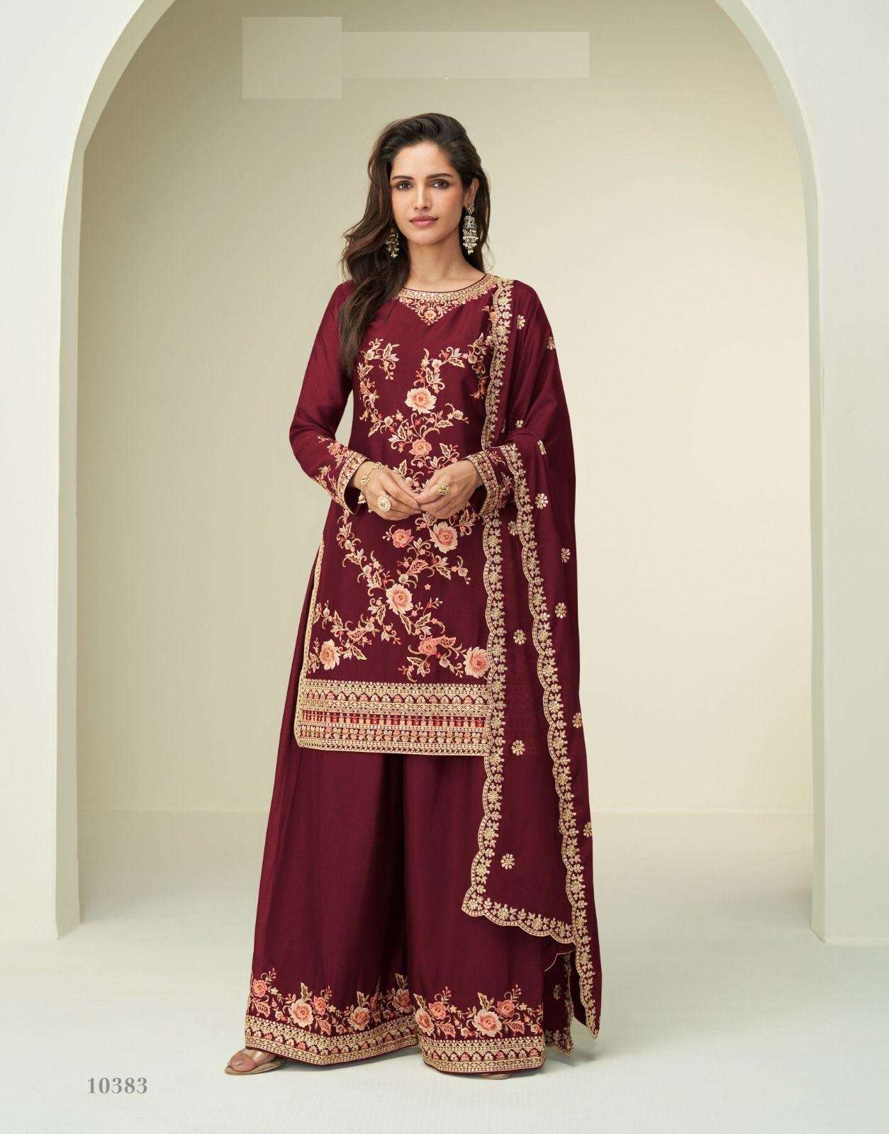 | Short Description | : | DESIGNER FANCY PARTY WEAR PREMIUM CHINON SHARARA SALWAR SUIT PALAZZO AF GOURI 10380-10383 |