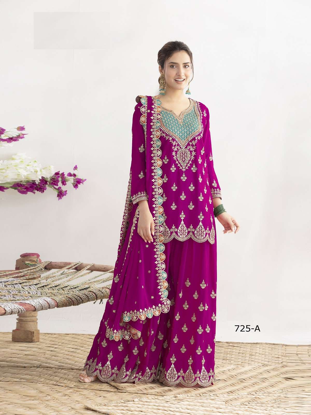 | Short Description | : | DESIGNER FANCY PARTY WEAR PREMIUM CHINON SILK SHARARA SALWAR SUIT PALAZZO HT 725 COLOR |