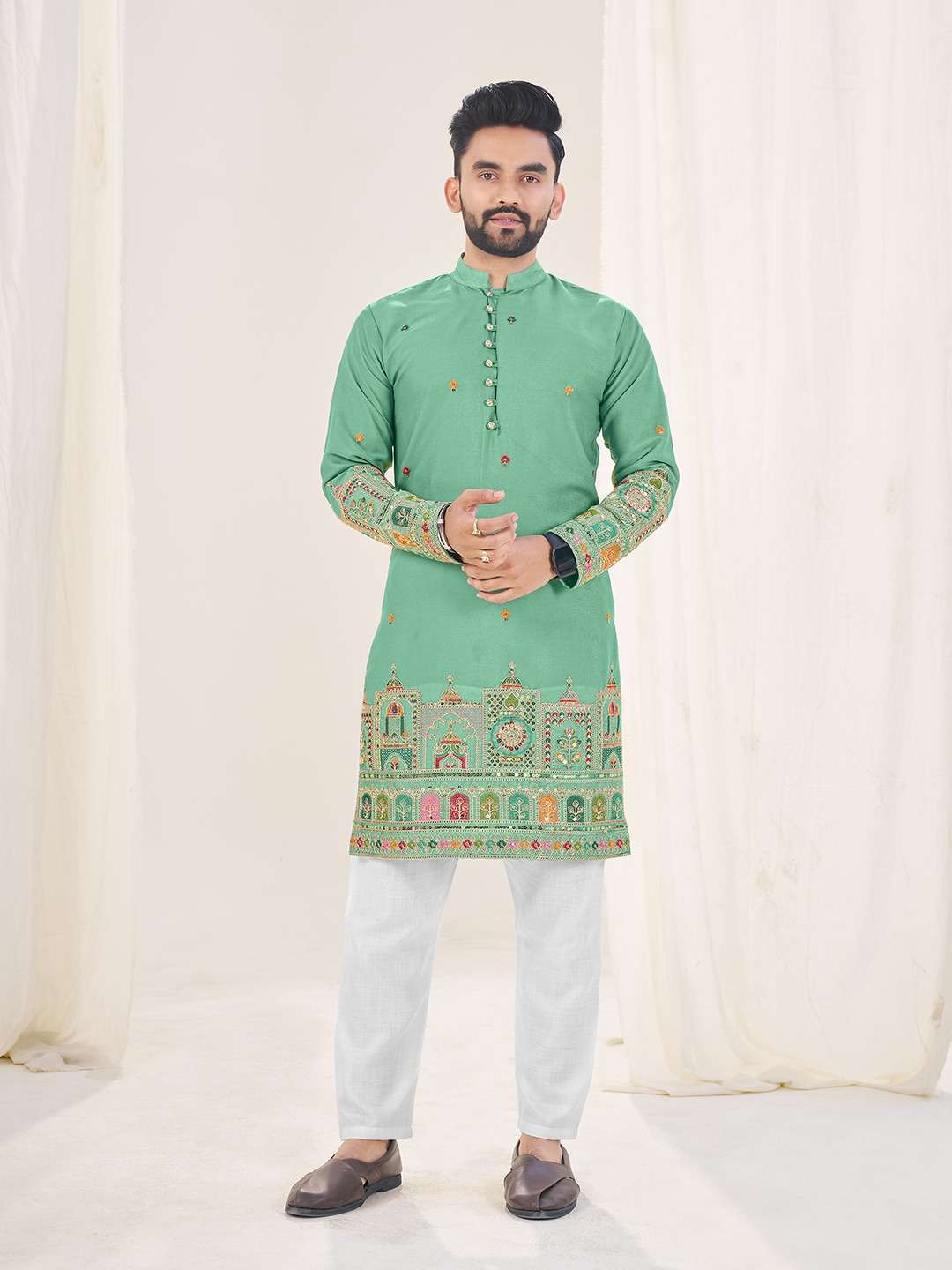 | Short Description | : | DESIGNER PARTY WEAR READYMADE INDIAN MENS GEORGETTE SILK KURTA SS 1-10 |