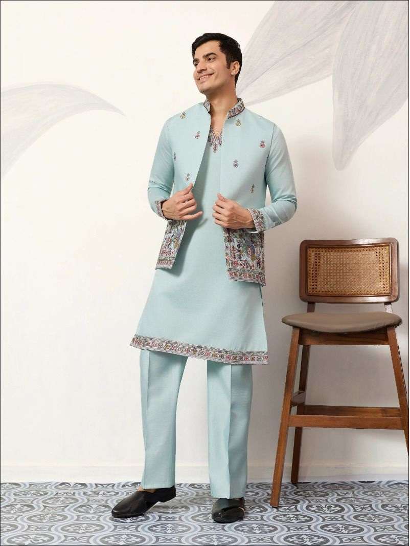 | Short Description | : | DESIGNER PARTY WEAR READYMADE INDIAN MENS VISCOSE SILK KOTI KURTA KF 61651-61655 |