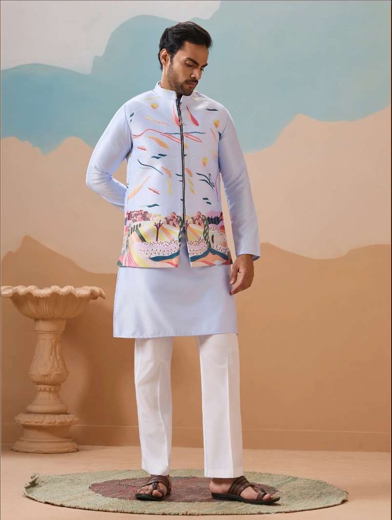 | Short Description | : | DESIGNER PARTY WEAR READYMADE INDIAN MENS SILK KOTI KURTA KF 61571-61573 |