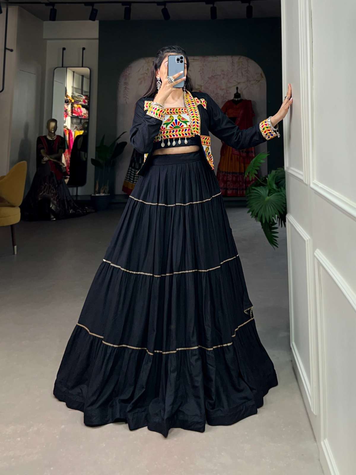 | Short Description | : | DESIGNER READYMADE RAYON COTTON NAVRATRI WEAR SKIRT BLOUSE KOTI COLLECTION KU 1606 COLOR |