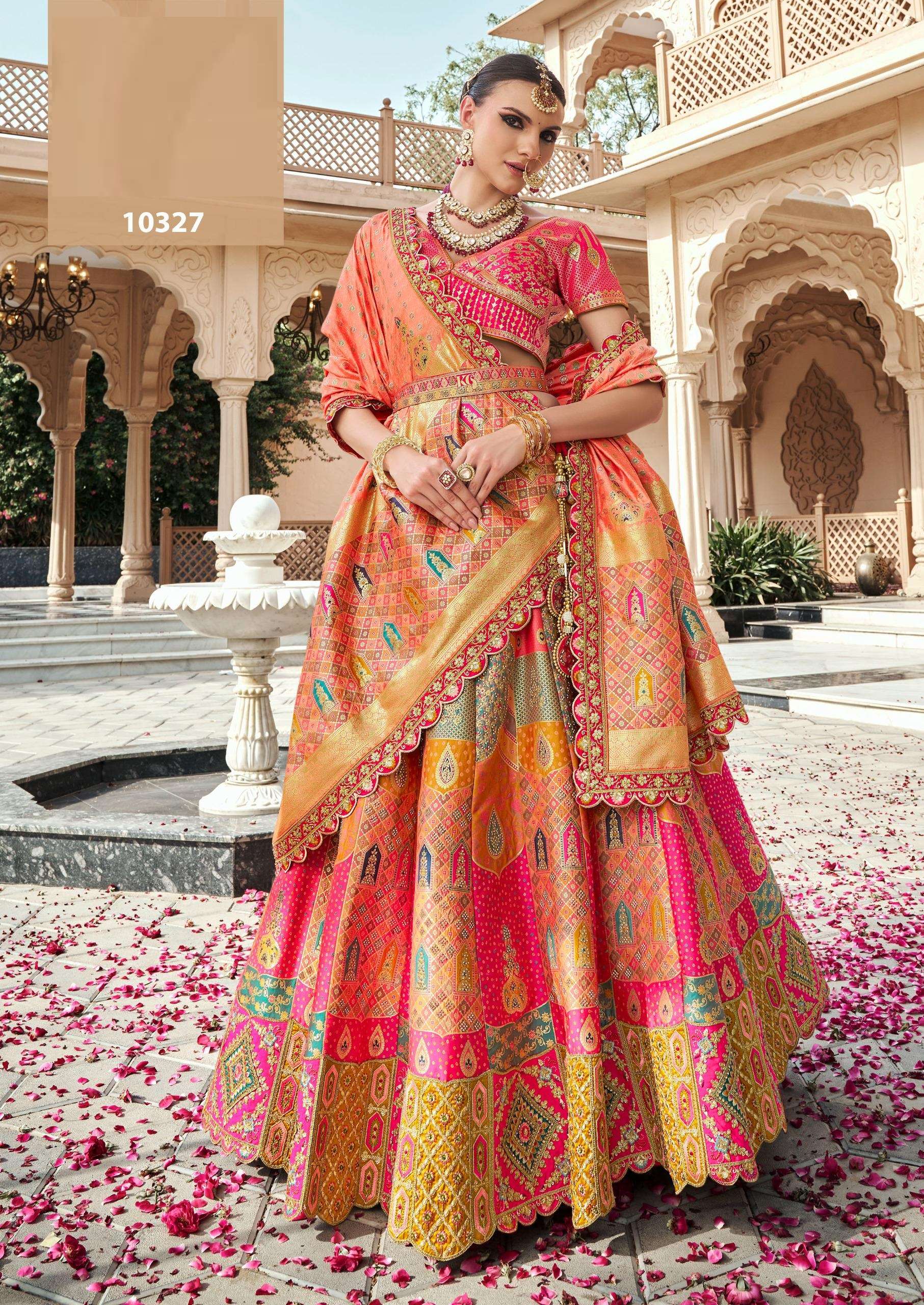 | Short Description | : | DESIGNER WEDDING BRIDAL WEAR INDIAN HEAVY BANARASI SILK LEHENGA CHOLI WITH SILK DUPATTA SM ROYAL 10326-10331 |