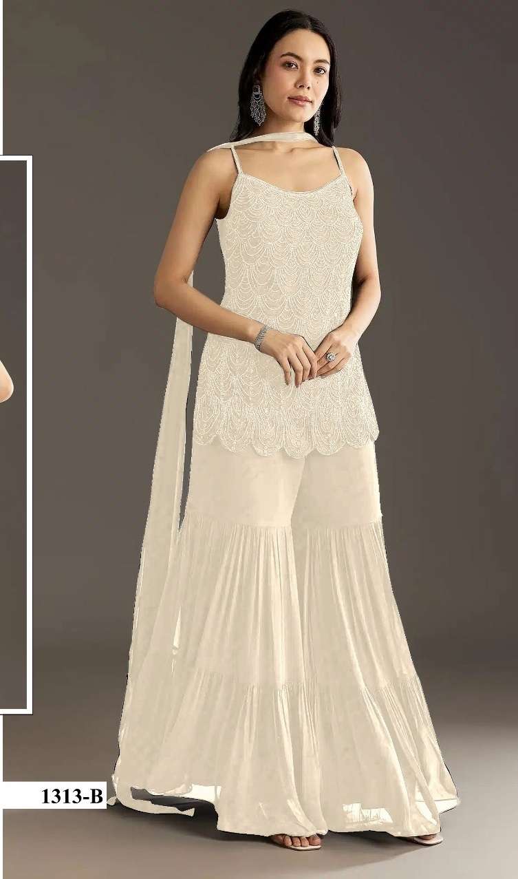 | Short Description | : | DESIGNER WEDDING PARTY WEAR FAUX GEORGETTE SHARARA PALLAZO SALWAR SUIT HT 1313 COLOR |