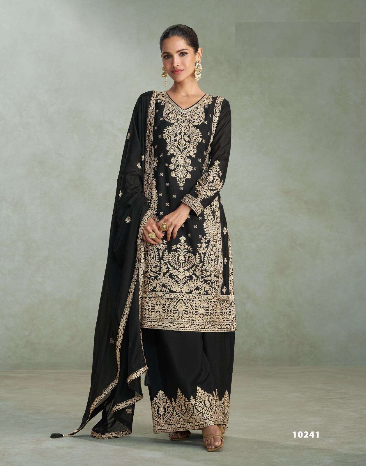 | Short Description | : | DESIGNER WEDDING PARTY WEAR REAL CHINON SHARARA PALLAZO SALWAR SUIT AF MIRA 10239-10241 |