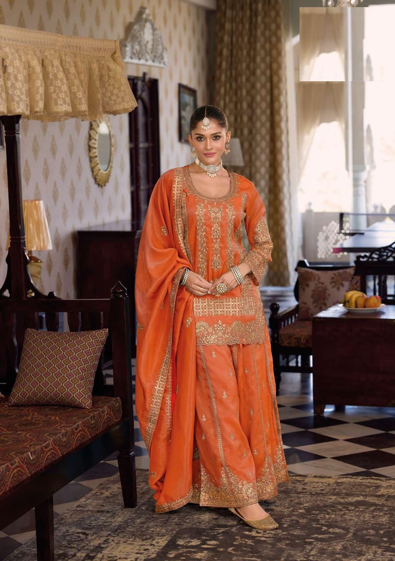| Short Description | : | DESIGNER WEDDING PARTY WEAR REAL CHINON PALAZZO SHARARA SALWAR SUIT EB AFRIN 1851-1853 |