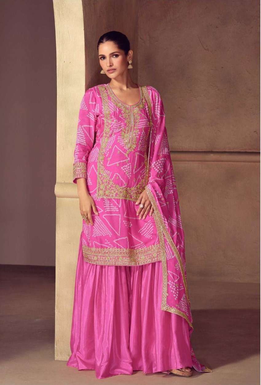 | Short Description | : | DESIGNER WEDDING PARTY WEAR REAL CHINON SHARARA PALLAZO SALWAR SUIT GL MRUNAL 7571-7573 |