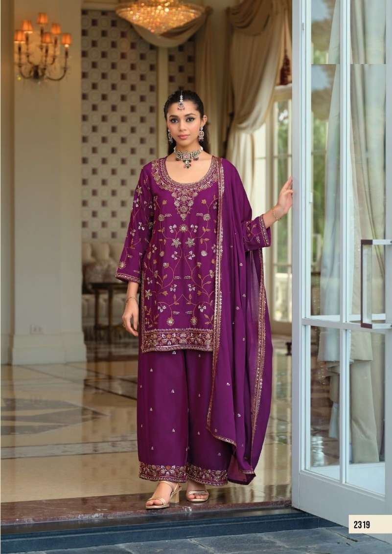 | Short Description | : | DESIGNER WEDDING PARTY WEAR REAL CHINON PALAZZO SHARARA SALWAR SUIT EB TASROOP 2319-2321 |