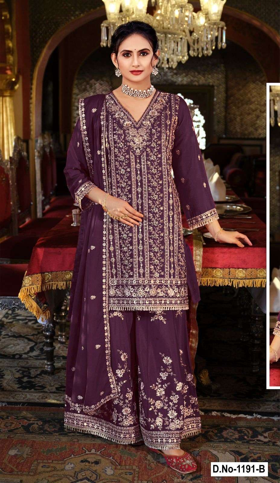 | Short Description | : | DESIGNER WEDDING PARTY WEAR REAL CHINON SHARARA PALLAZO SALWAR SUIT SHF 1191 COLOR |