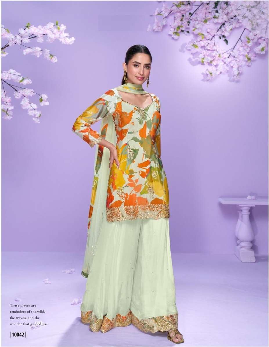 | Short Description | : | DESIGNER WEDDING PARTY WEAR REAL CHINON SHARARA PALLAZO SALWAR SUIT SY VAANI 10041-10044 |