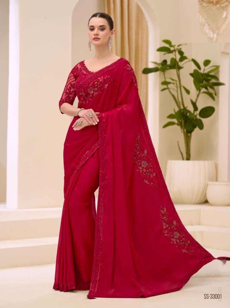 | Short Description | : | DESIGNER WEDDING PARTY WEAR SARTIN GEORGETTE SAREE WITH THREAD SEQUENCE WORK SM TFH 33001-33018 |