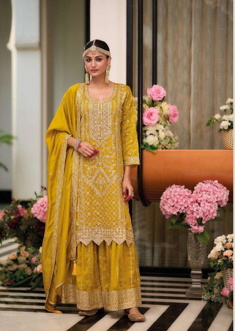 | Short Description | : | DESIGNER WEDDING PARTY WEAR SILK SHARARA PALLAZO SALWAR SUIT DST EB PREET 1729-1732 |