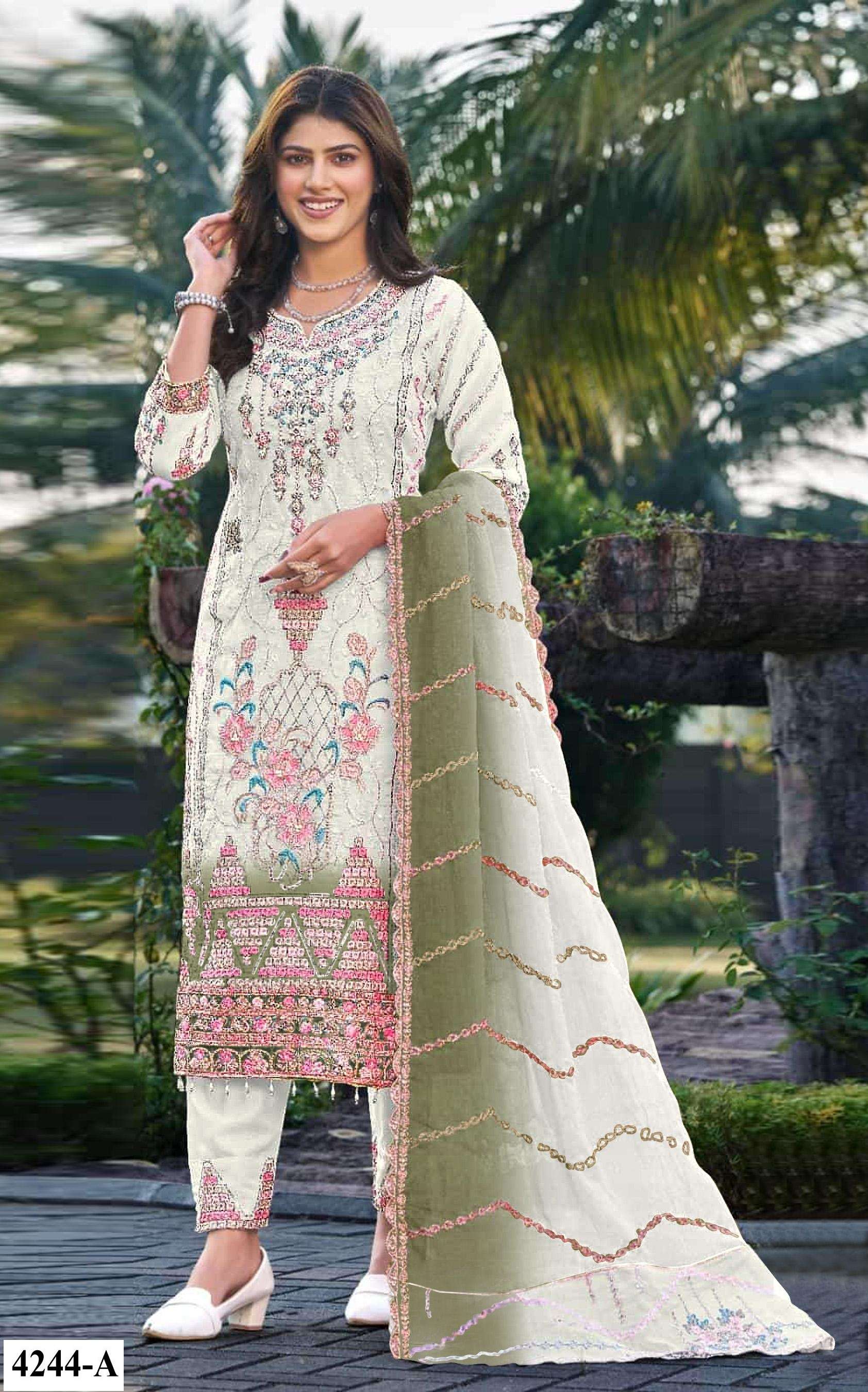 | Short Description | : | DESIGNER WEDDING PARTY WEAR STRAIGHT SHADED CRUNCHY PAKISTANI SALWAR SUIT JG 4244 COLOR |