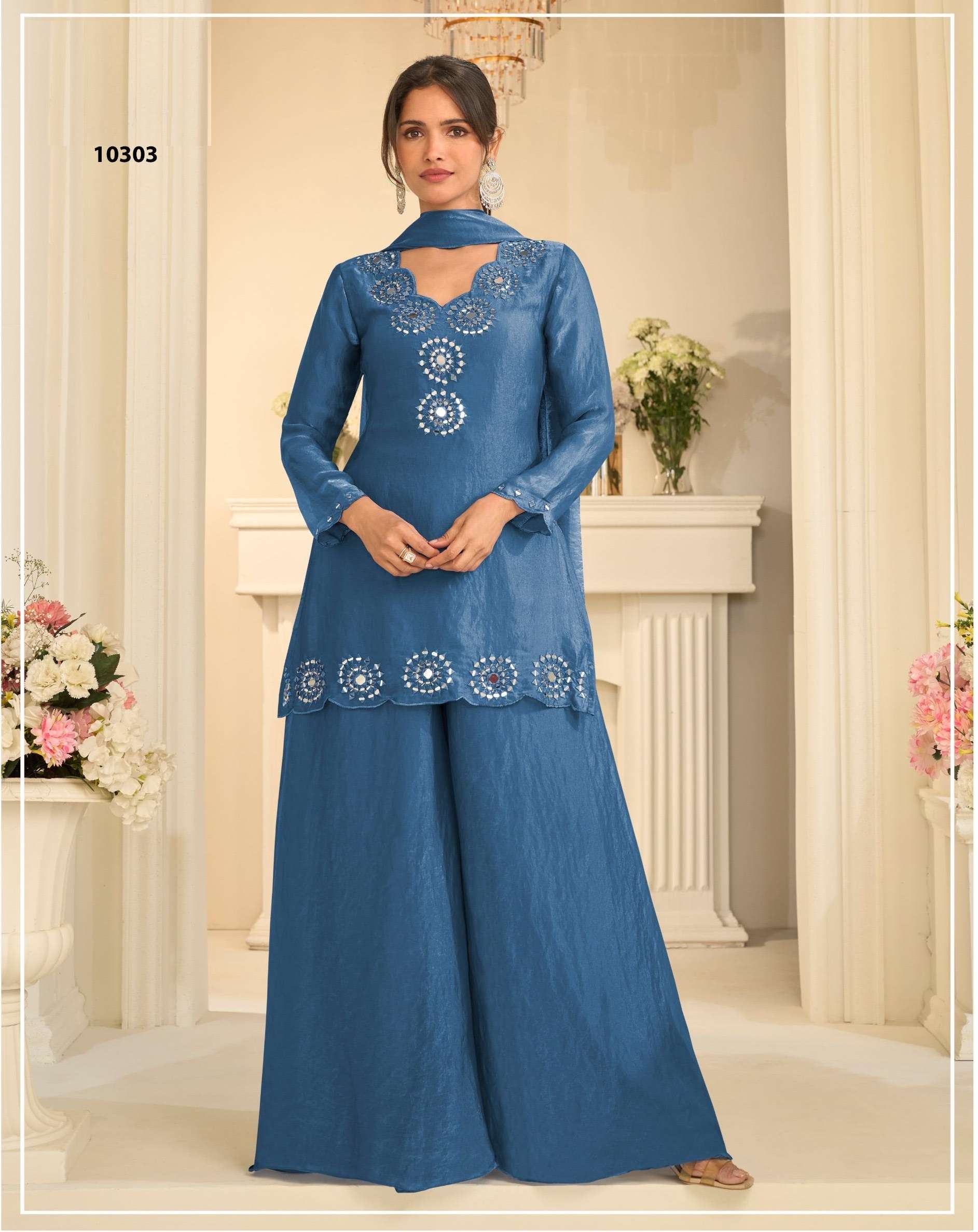 | Short Description | : | EID SPECIAL REAL MIRROR WORK SIMAR SILK SHARARA SALWAR SUIT PALAZZO SUIT SY 10303 COLOR |