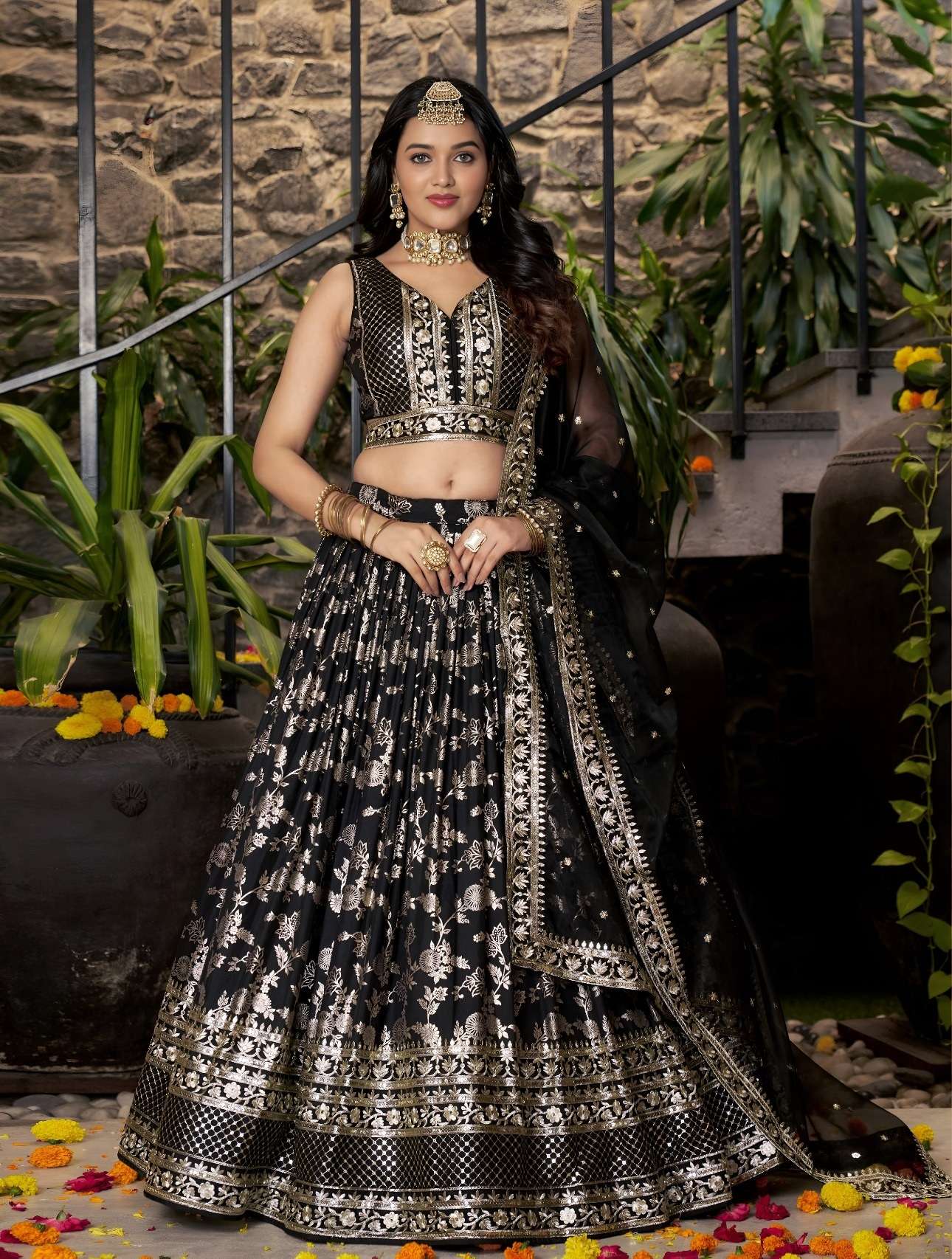 | Full Description | : | LEHENGA:-JACQUARD SILK, BLOUSE-JACQUARD SILK, DUPATTA-ORGANZA SILK, SEM STITCHED FIT UP TO 44 INCHES, SEQUENCE ZARI WORK |