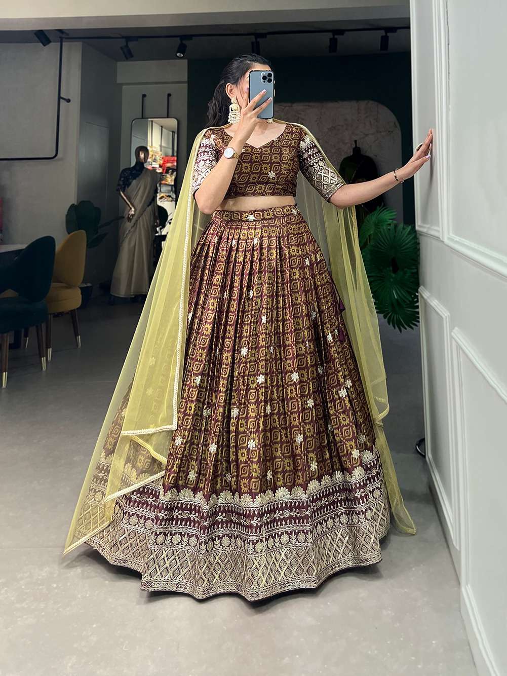 | Lehenga Fabric | : | CHINON SILK |