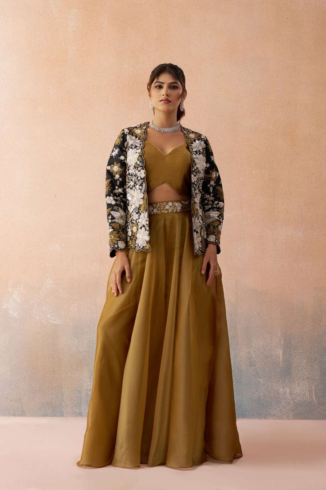 | Full Description | : | FABRIC:JACKET:- RAW SILK, BOTTOM:-TISSUE SILK, BLOUSE:-TISSUE SILK, BEADS EMBROIDERY AND STONE WORK |