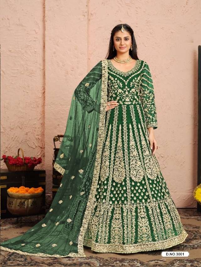 | Short Description | : | INDIAN DESIGNER PARTY WEAR ANARKALI SALWAR SUIT LONG GOWN IN HEAVY NET ANY 3001-3004 |