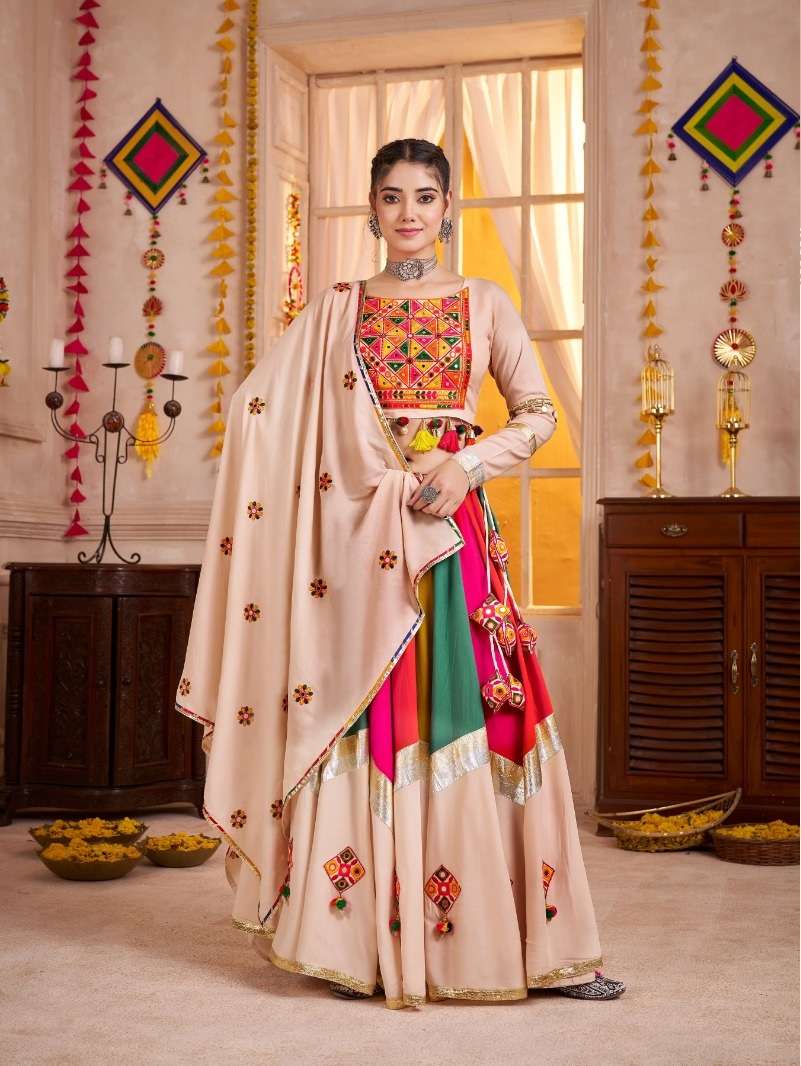 | Short Description | : | NAVRATRI WEAR VISCOSE COTTON MULTICOLOR LEHENGA CHOLI WITH MIRROR WORK KF RAAS 11091-11094 |