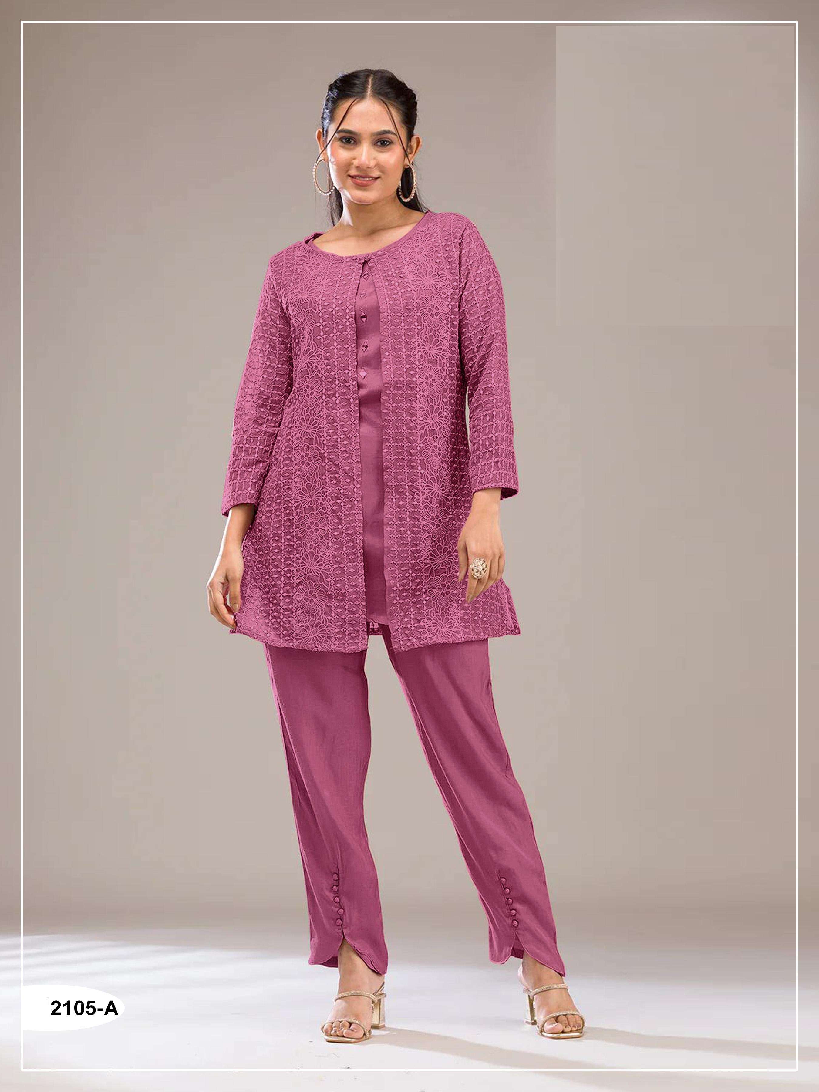| Short Description | : | READYMADE FAUX GEORGETTE CO ORD SET FOR WOMEN WEAR FANCY READYMADE CORD SET JG 2105 COLOR |