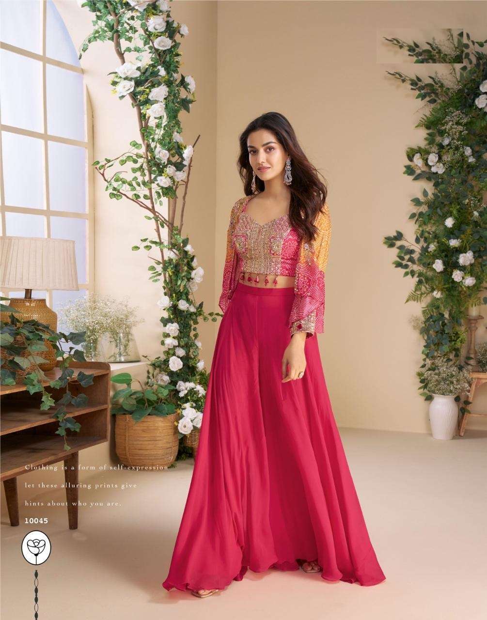 | Short Description | : | READYMADE PARTY WEAR GEORGETTE BLOUSE WITH PLAZZO AND DUPATTA SALWAR SUIT SY MOON 10045-10049 |